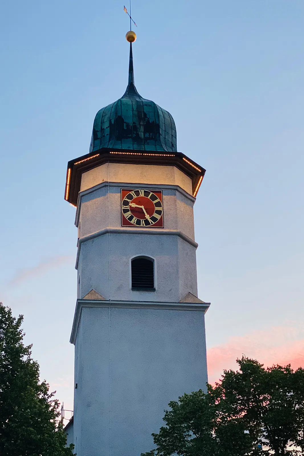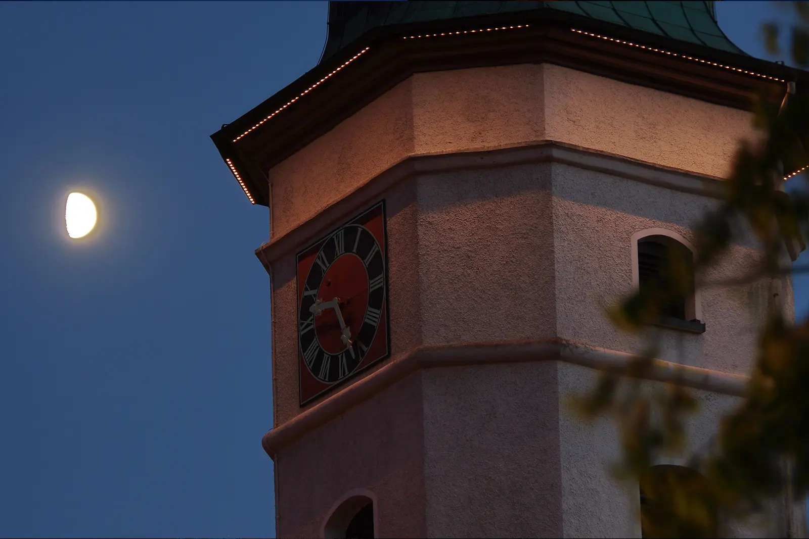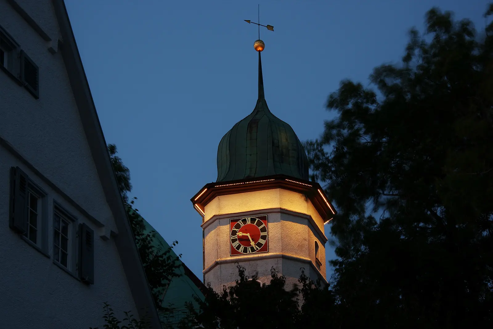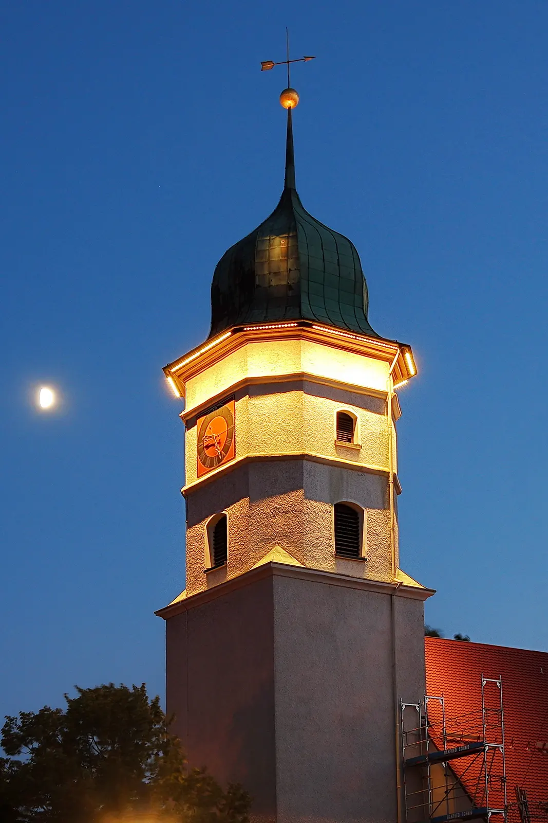 Besondere Turminszenierung durch Sonderleuchten und individuelle Lichttechnik.